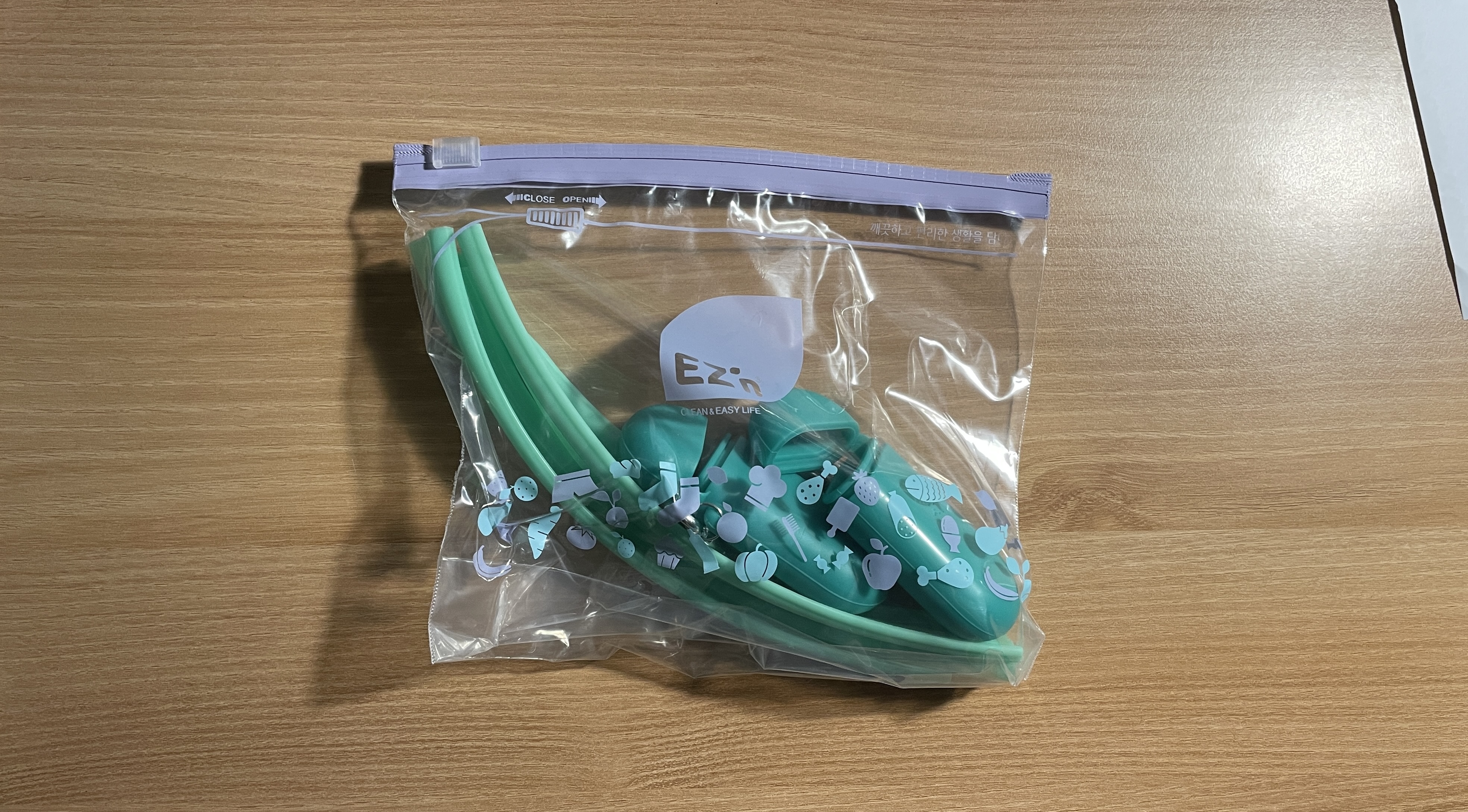 열탕 소독을 5분 후에 사용하라는 문구가 있어 열탕 소독 후에 말려서 지퍼팩에 넣었다.