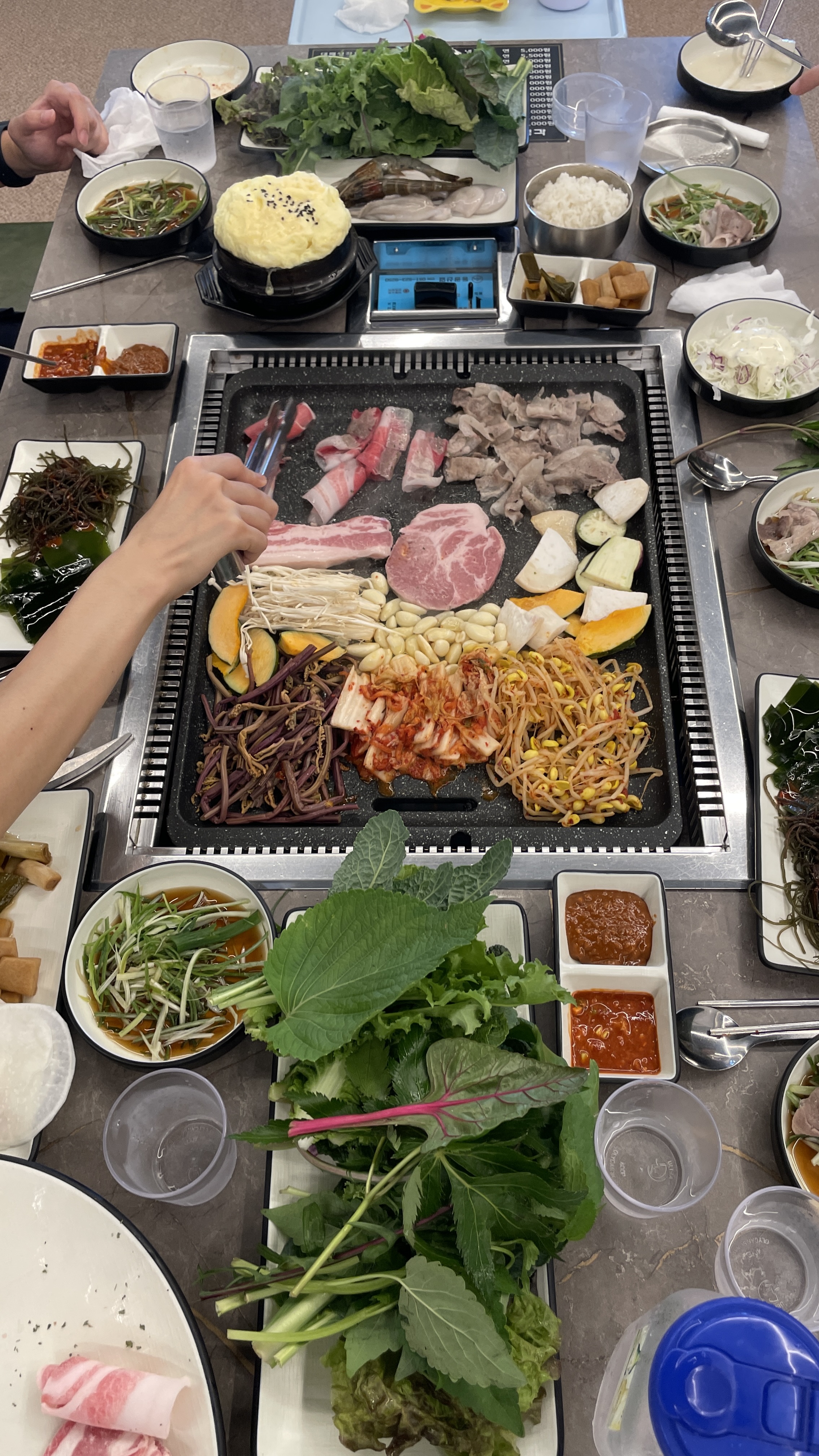 셀프바에서 채소와 갖가지 반찬을 가져다 먹었다. 그리고 폭탄 계란찜(₩3,000)도 주문하였고