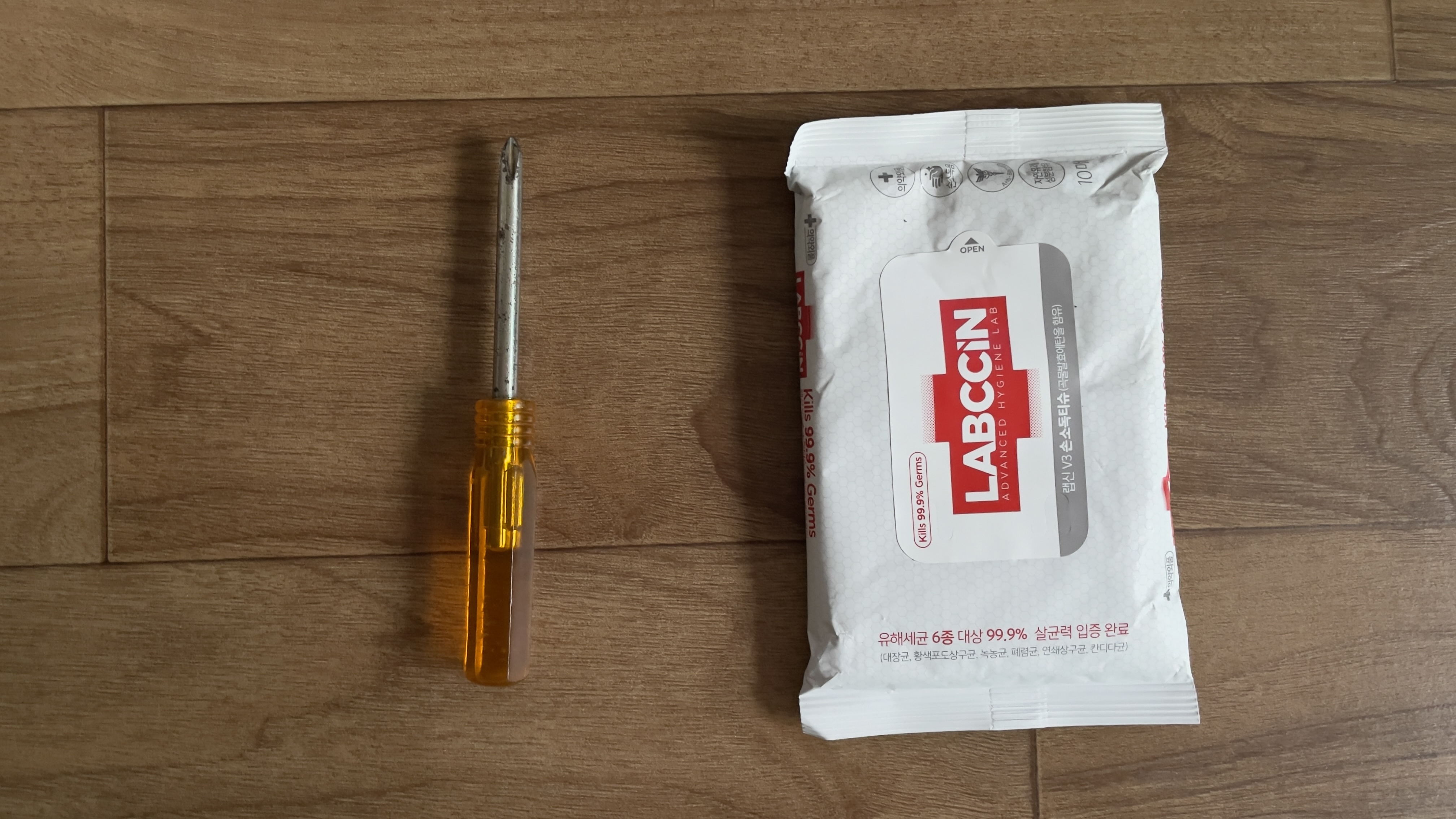 준비물은 십자드라이버 하나, 항균물티슈 하나면 된다.