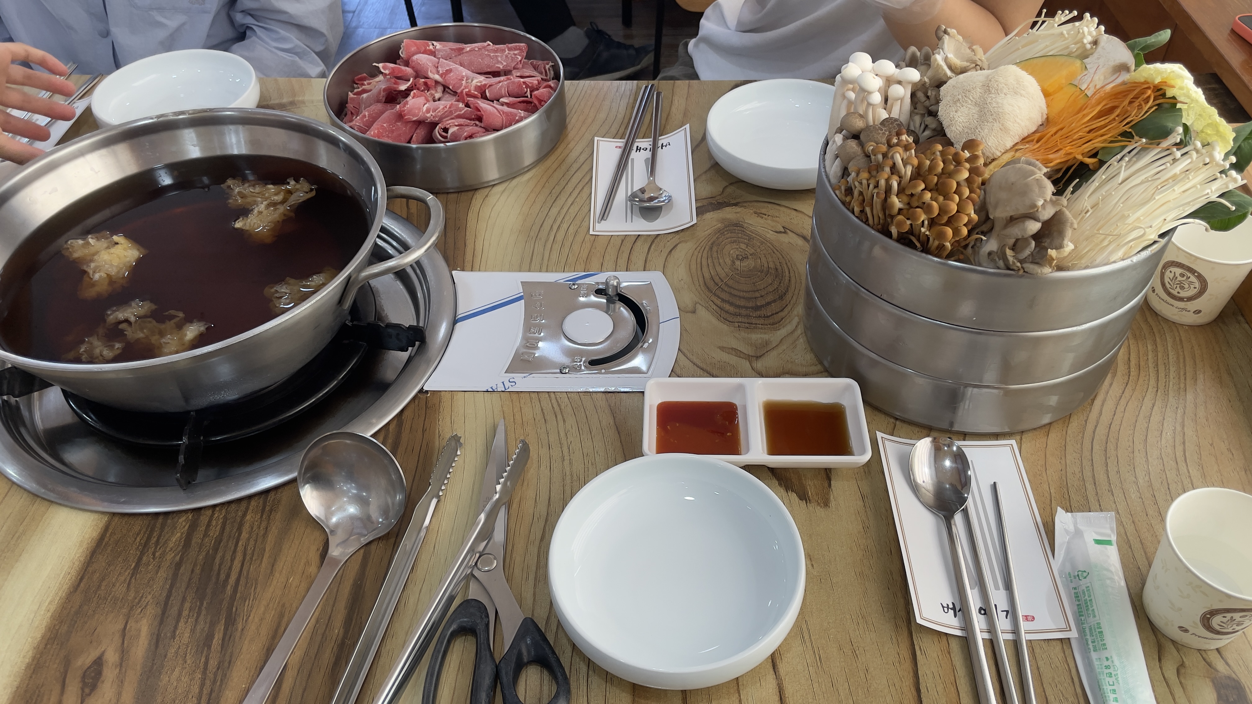 3층짜리 만두찜기 같은 곳에 꼭대기에는 이름도 다 모를 버섯과 채소가 들어 있고