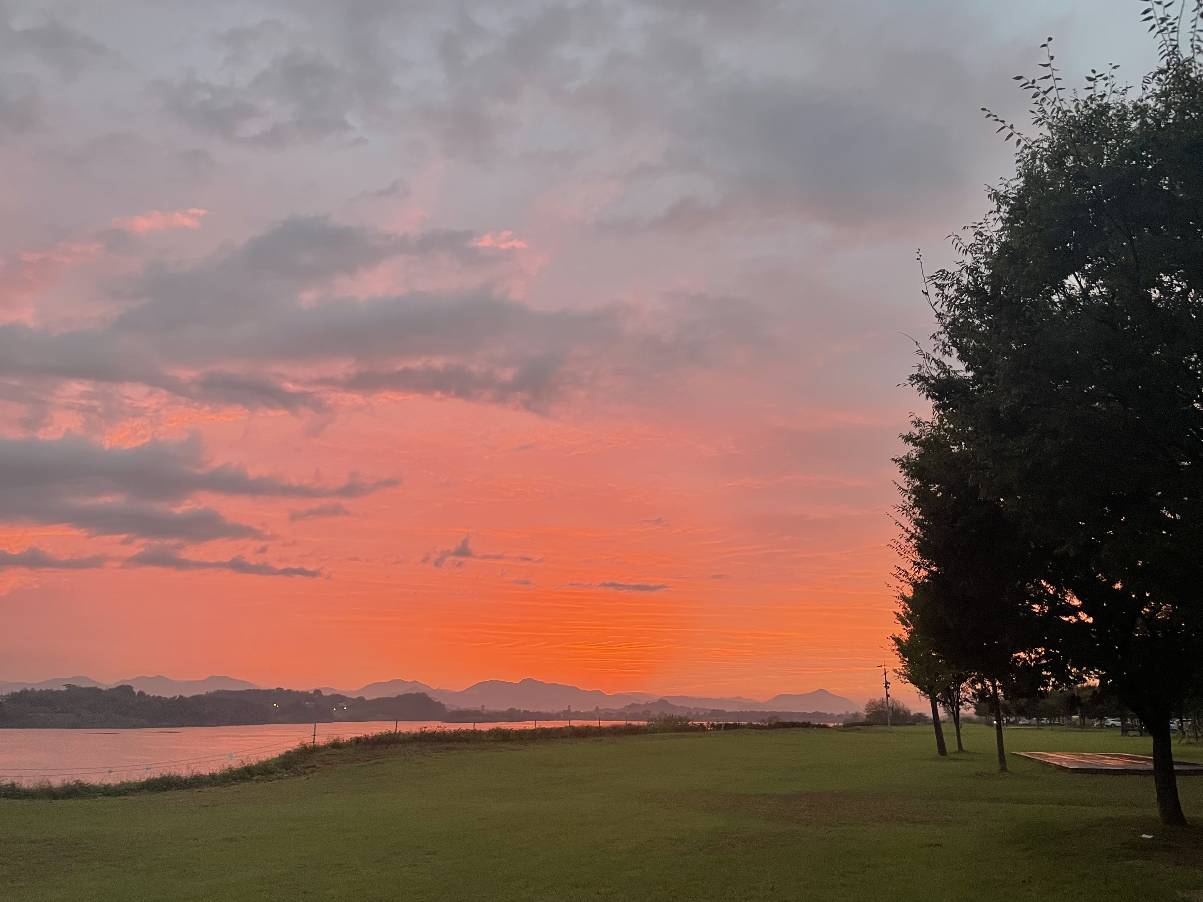 위 사진이 해 질 녘 이 캠핑장에서 볼 수 있는 해 질 녘의 모습이다.